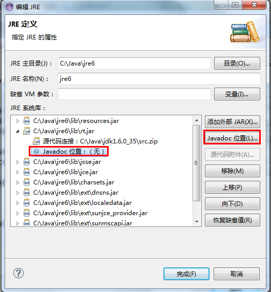 选择"rt.jar"包——>>"javadoc位置"——>>"javadoc位置"