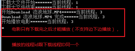 输出结果:文件下载顺序不固定,结束顺序不固定,每个下载都有自己的线程ID。