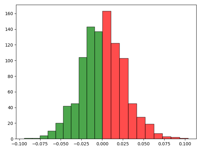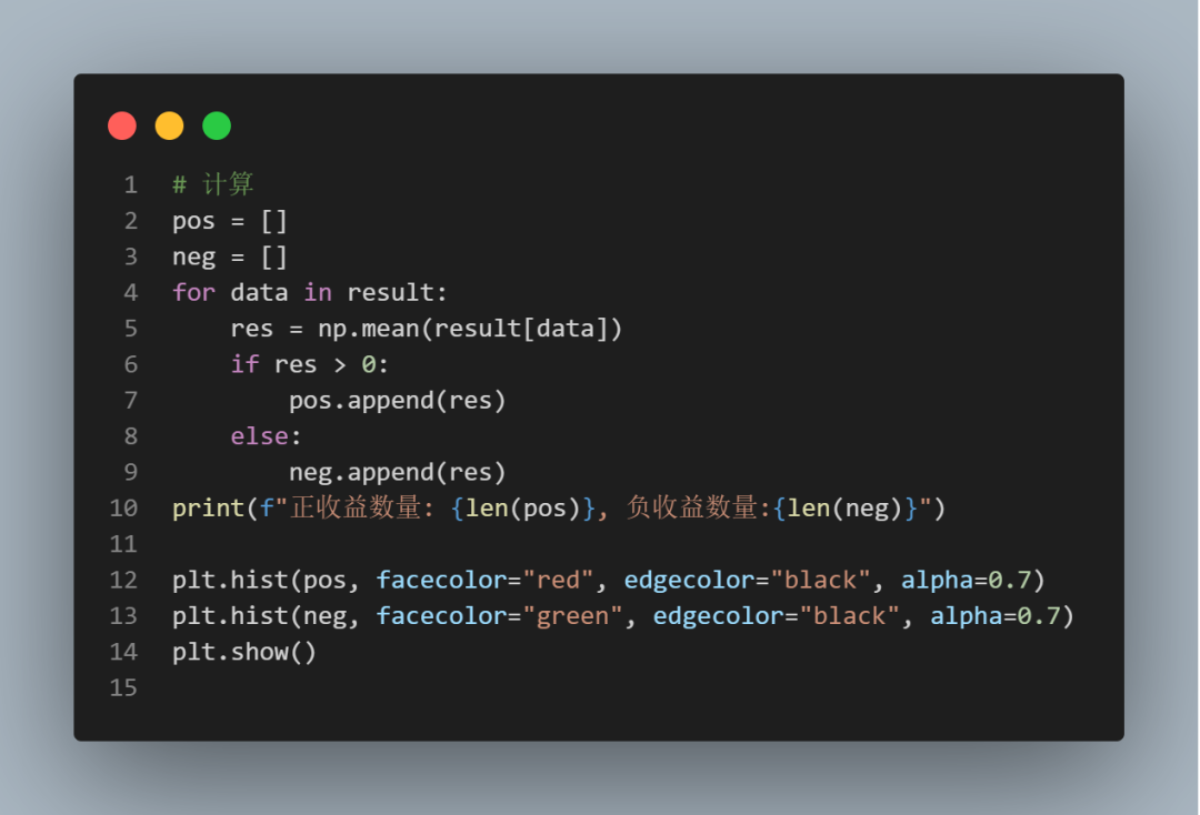 最终算得正收益股票数量:493,负收益股票数量:507,利润分布图如下: