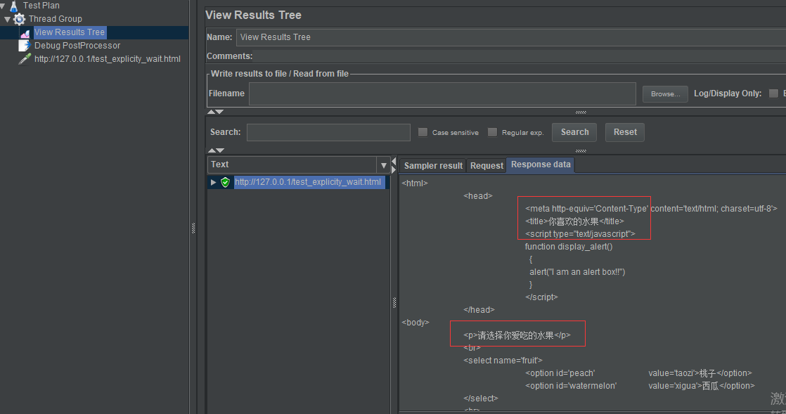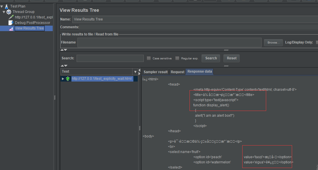 现象:jmeter访问本地文件,文件内容有中文,jmeter返回内容显示乱码: