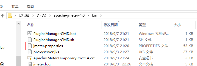 进入Jmeter的bin目录下,找到jmeter.properties文件,以文本形式打开