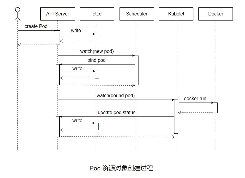 API Server尝试着将Pod对象的相关信息存入etcd中,待写入操作执行完成,API Server即会返回确认信息至客户端。