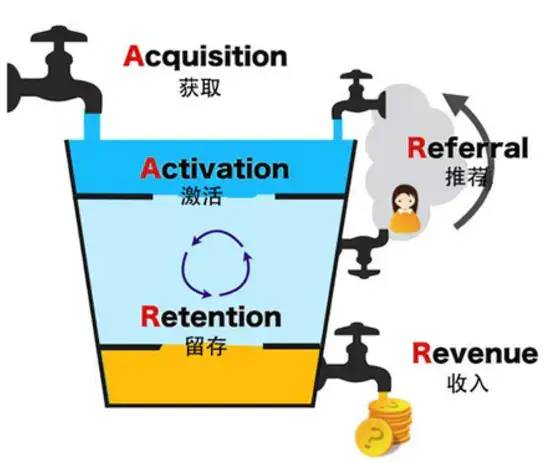 它将创业公司应该关注的指标切分成了获取、激活、留存、收入、推荐等5个环环相扣的模块,在每个模块中需要关注的指标都看过《增长黑客》的朋友对这个模型应该不陌生。AARRR模型的每个层级所衡量的关键指标是不同的: