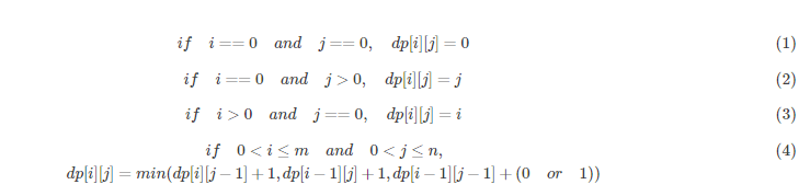 定义dp[i][j]为word1中前i个字符组成的串,与word2中前j个字符组成的串的编辑距离。