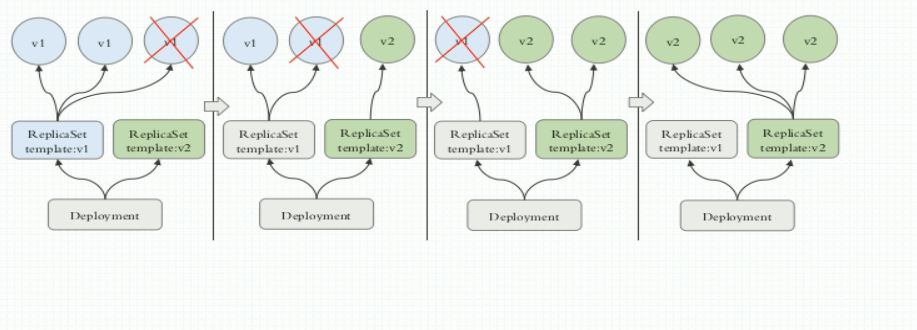 deployment是建构在rs之上的,可以控制多个rs滚动式自定义,自控制的更新。
