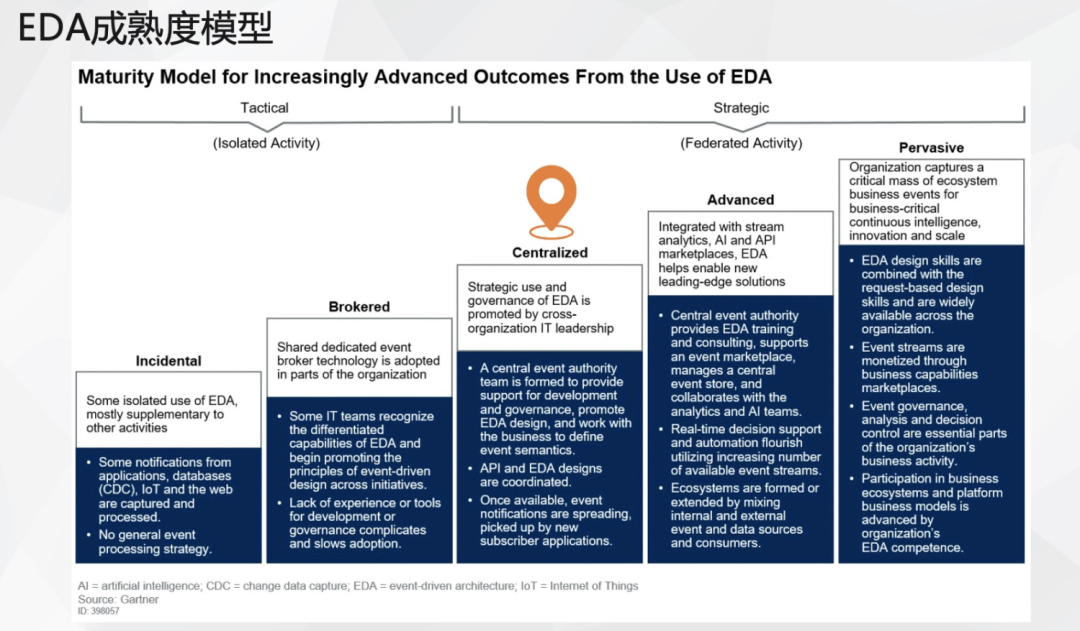 Centralized:以战略的形式提出中心化的 EDA 解决方案,有专门的组织团队提供 EDA 实现, EDA 架构开始广泛被采用。