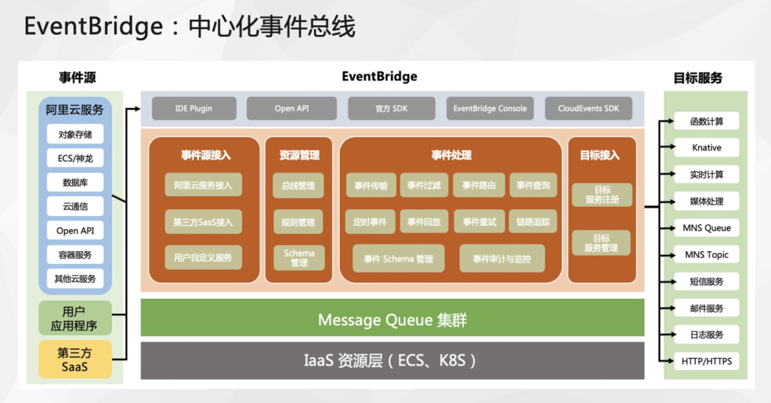 事件总线 EventBridge :作为我们下一代的消息产品形态,原生支持 CloudEvents 标准,提供中心化事件服务能力,加速云原生生态集成,EDA首选。