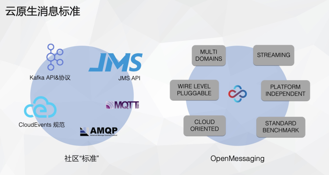 最开始我们就提到标准化是云原生消息中间件的进化方向之一,我们从两个维度打磨产品的标准化建设。