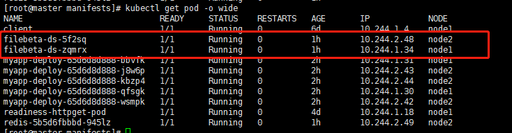 通过kubectl get pod -o wide 可以看出一个节点上只有一个filebeat的pod