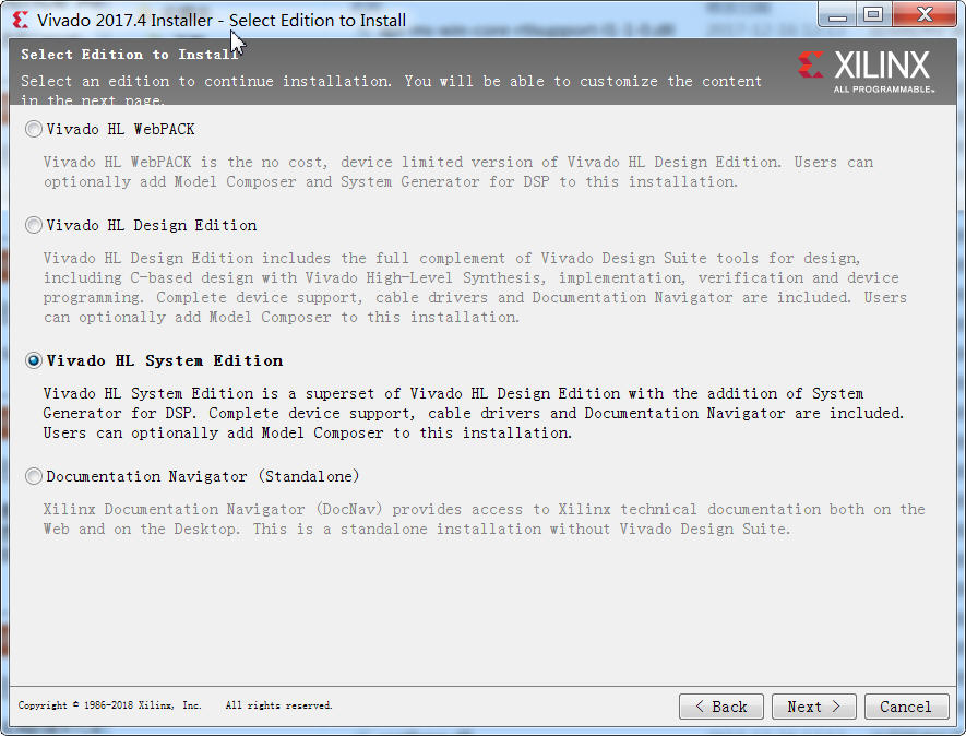 对于版本,用户可以自定义旋转Vivado HL Design Edition 或者Sytem Edition