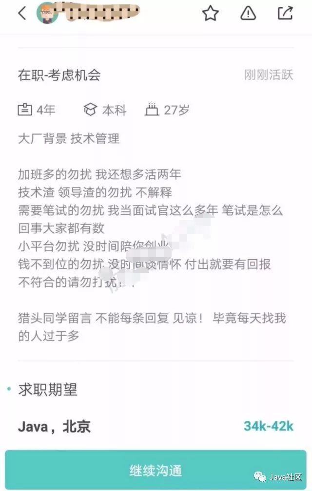 这名程序员还对邀请面试的公司规定了“六勿扰”:加班多的勿扰,我还想多活两年;技术渣、领导渣的勿扰,不解释;需要笔试的勿扰,我当面试官这么多年,笔试是怎么回事大家都有数;