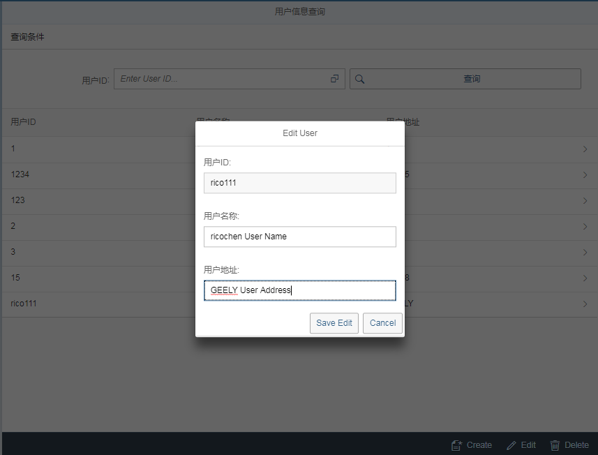 界面中增加了如下组件:Panel,Form,Label,Input,Button,Table,如下图所示: