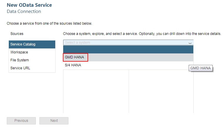 选择上一步已经配置好的Destination,例如 GMD HANA,如下图: