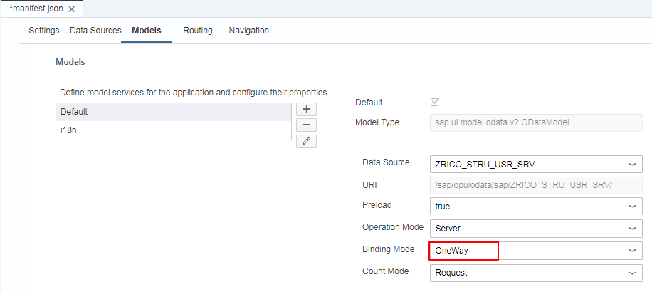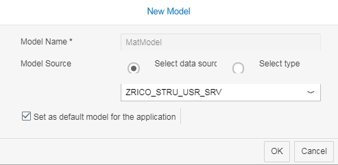 选择已配置的数据源ZRICO_STRU_USR_SRV,设置为默认Model,如下图: