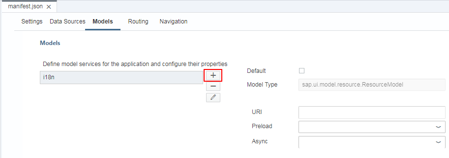 上一步创建了数据源,这里根据数据源配置对应的数据Model,打开manifest.json文件,显示Models标签页,如下图: