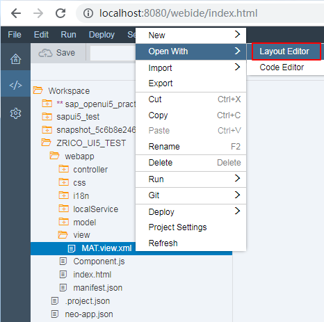 服务启动完成后,打开如下路径,进入SAP WEB IDE开发平台: