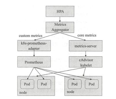 HPA(v2)支持从metrics-server中请求核心指标;从k8s-prometheus-adapter一类自定义API中获取自定义指标数据, 多个指标计算时,结果中数值较大的胜出