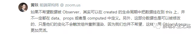1,在网上搜索vue长列表渲染,推荐的方案有Object.freeze() ,后来呢,看到黄轶大神的解答,就是说可以把那些只用于展示的,并且比较长的列表数据,在crated钩子中绑定到this身上,不一定需要写在data里面,