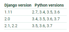 相关链接:https://docs.djangoproject.com/en/dev/faq/install/#what-python-version-can-i-use-with-django