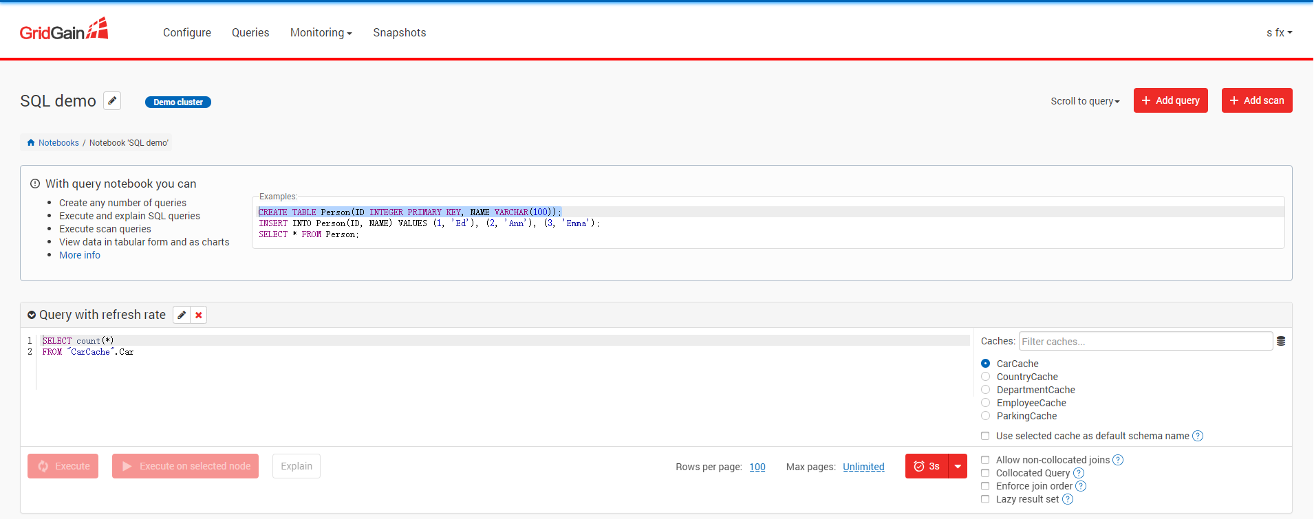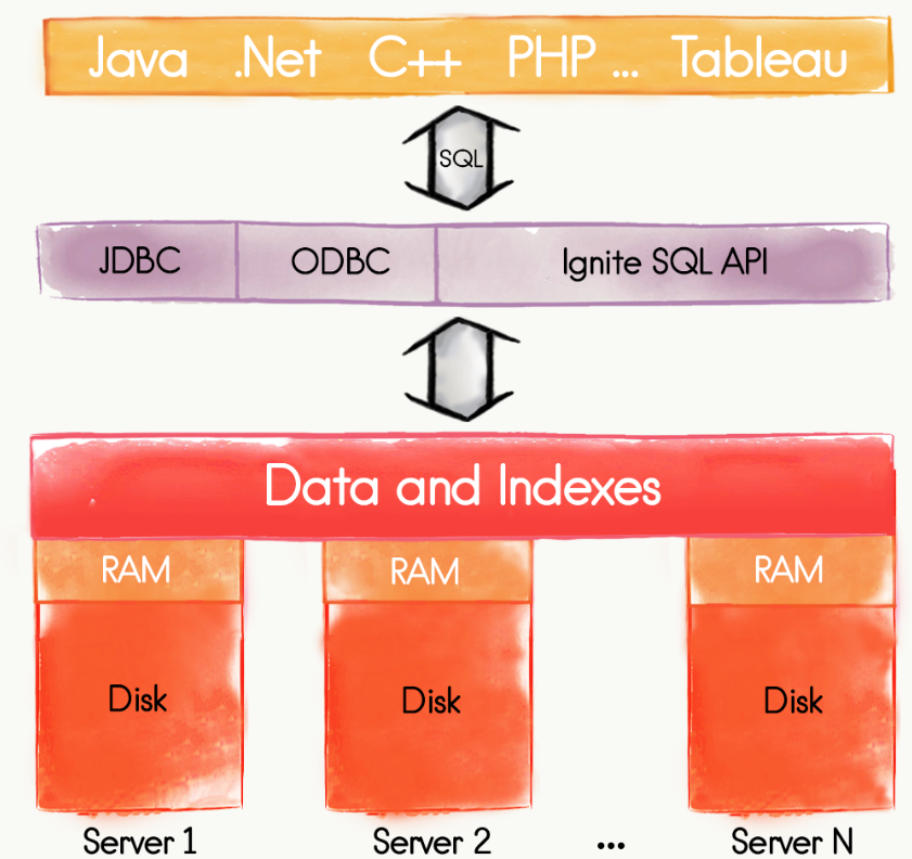 Ignite提供了完整的SQL、DDL和DML的支持,可以使用纯SQL而不用写代码与Ignite进行交互,这意味着只使用SQL就可以创建表和索引,以及插入、更新和查询数据。有这个完整的SQL支持,Ignite就可以作为一种分布式SQL数据库。