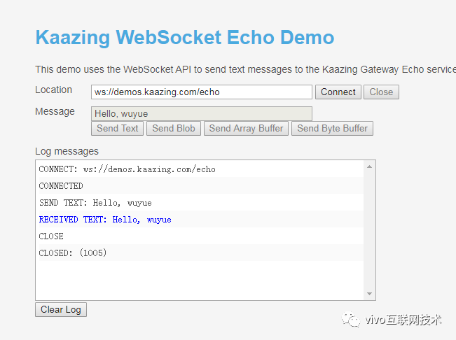 可以看出来这里我们操作步骤一共是 connect,然后发消息,服务器返回我们发送的消息,最后我们主动断开连接。