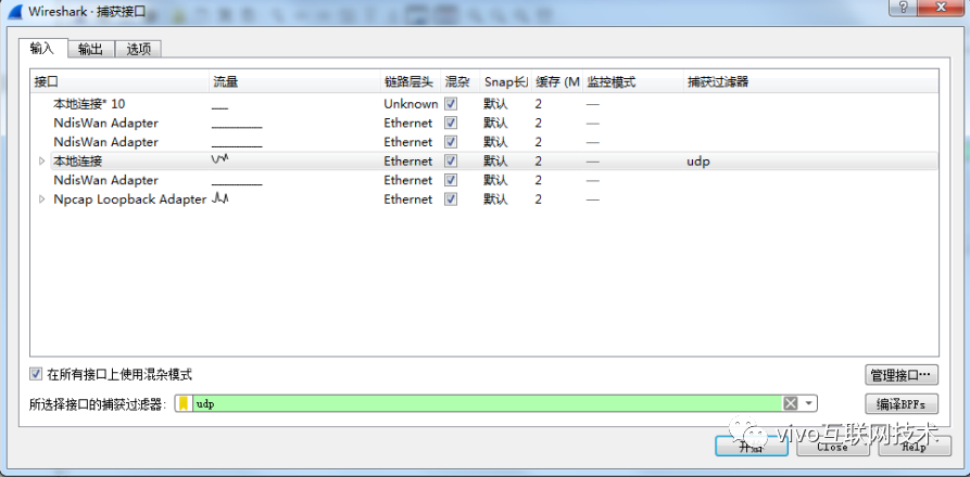 这里注意因为 Wireshark的捕获过滤器无法设置DNS协议,又因为DNS是基于 UDP协议的,所以这里捕获过滤器我们就设置为 UDP就好。
