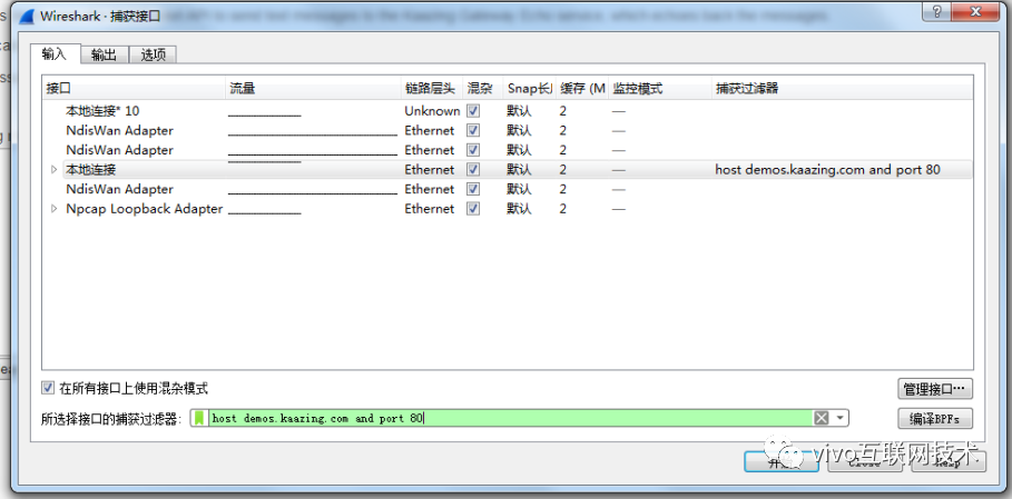 首先 来看一下WebSocket的帧格式。我们首先设置一下 Wireshark的捕获器: