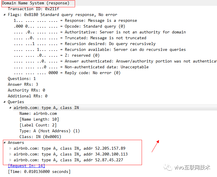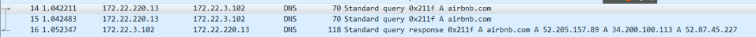 然后就可以在一堆 UDP报文中找到我们想看的DNS报文了,我们在浏览器中输入www.airbnb.com: