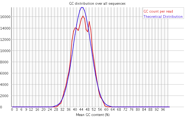 GC含量指的是G和C这两中碱基占总碱基的比例。二代测序平台或多或少都存在一定的测序偏向性,我们可以通过查看这个值来协助判断测序过程是否足够随机。对于人类来说,我们基因组的GC含量一般在40%左右。因此,如果发现GC含量的图谱明显偏离这个值那么说明测序过程存在较高的序列偏向性,结果就是基因组中某些特定区域被反复测序的几率高于平均水平,除了覆盖度会有偏离之后,将会影响下游的变异检测和CNV分析。