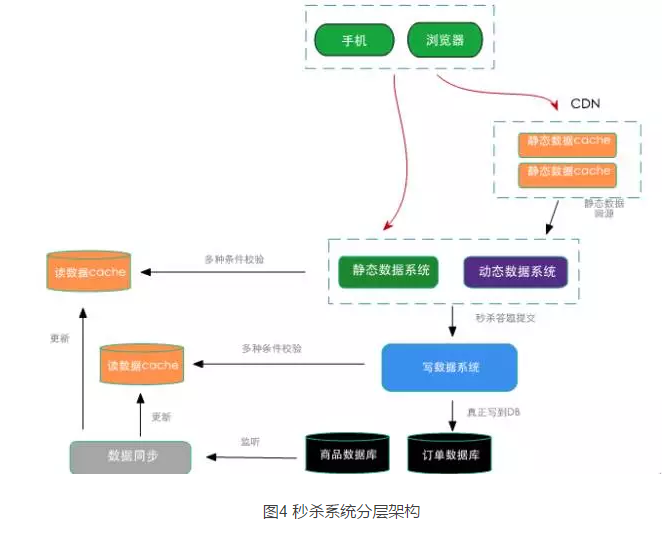 秒杀系统正是按照这个原则设计的系统架构,如图4所示。