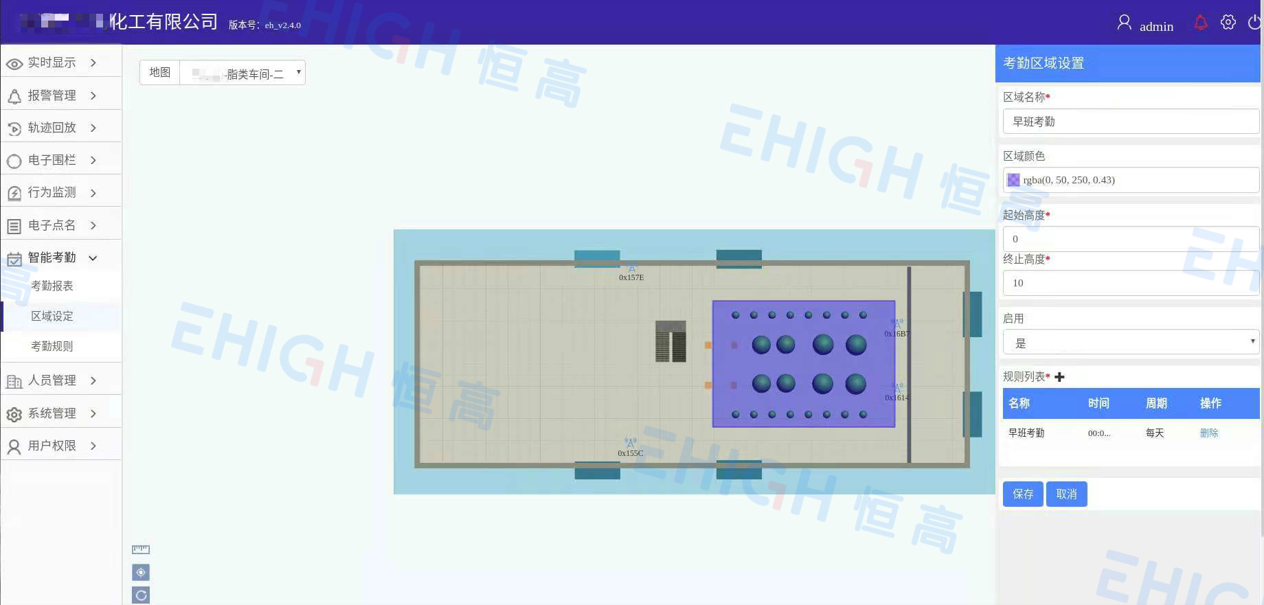 化工事故大多是因为人为因素而引起的。因此“管好”人是避免化工安全事故的首要任务。化工企业员工数量较多,且分工明确、专人专职,杜绝串岗现象出现、避免监管不到位是安管工作的重中之重。因此,化工厂可对人员进行脱岗、串岗行为监测,当人员超过一段时间脱离岗位或者处于他人岗位,系统自动报警,提醒管理者进行人员管理。