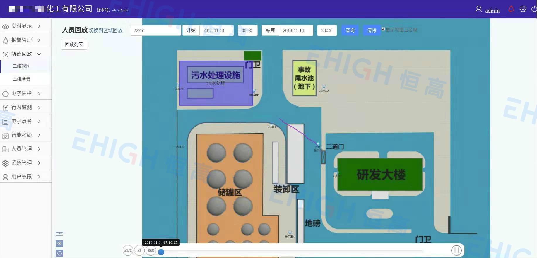 化工行业危险(易燃、易爆、易挥发、有毒)物资较多,化工厂可通过电子围栏功能将危险、有害物品的作业场所与生活区、辅助生产区分开,将有害作业与无害作业分开,高毒工作场所与其他工作场所隔离。对危险区进行进入权限设置,无权限人员进入危险区域,系统会自动发出警报,以此来确保巡检员处于安全区域。