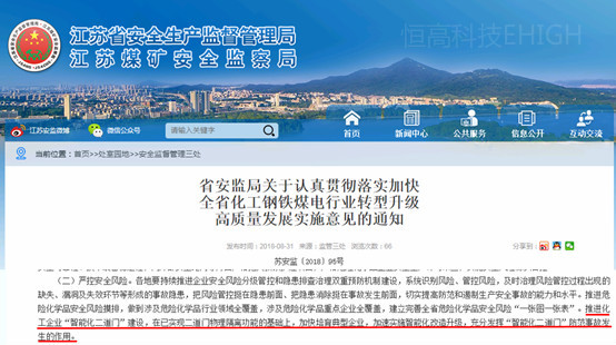 2018年8月,江苏省安监局发布了《省安监局关于认真贯彻落实加快全省化工钢铁煤电行业转型升级高质量发展实施意见的通知》,通知明确表示,推进化工企业“智能化二道门”建设,在已实现二道门物理隔离功能的基础上,加快实施智能化改造升级,充分发挥“智能化二道门”防范事故发生的作用。