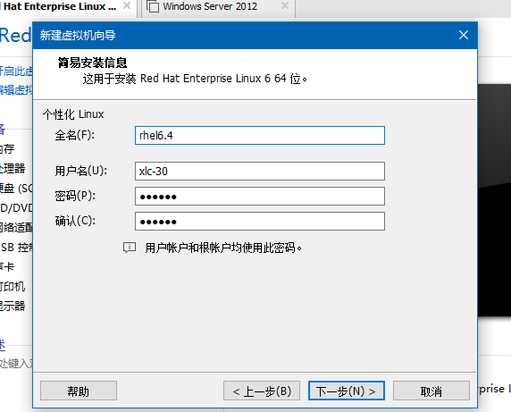 第五步,给自己的虚拟机设置用户名以及密码。并选择名称以及安装的位置。