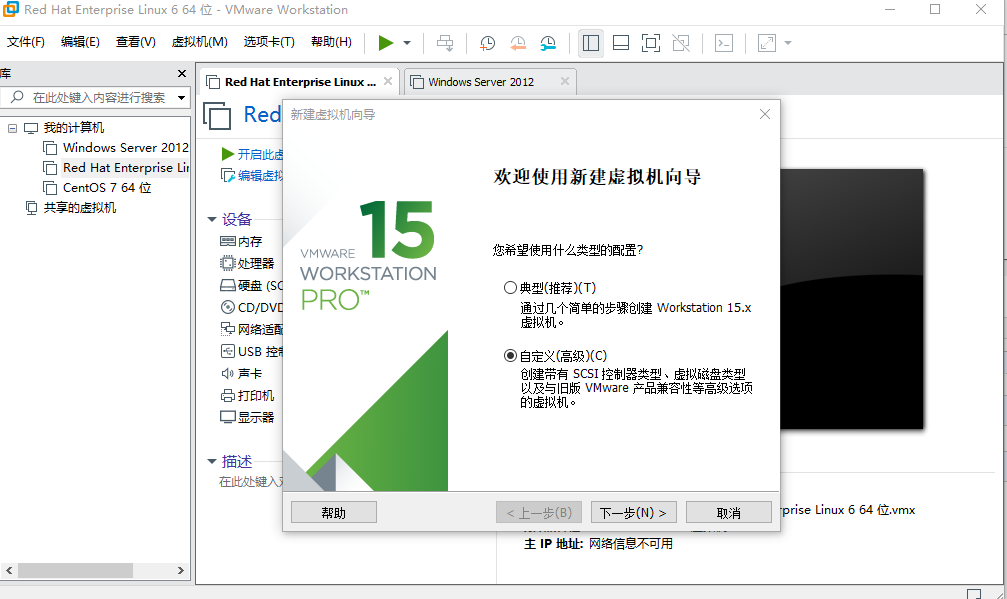 第二步,点击文件,然后选新建虚拟机。,新建虚拟机向导,选择自定义。