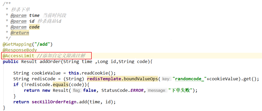 private RateLimiter rateLimiter = RateLimiter.create(20.0); @Pointcut("@annotation(com.changgou.webSecKill.aspect.AccessLimit)")