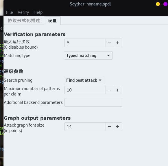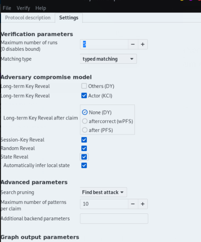 Scyther 工具的一个好处就是 强安全模型的参数等都可以通过手动的设置选项来添加。