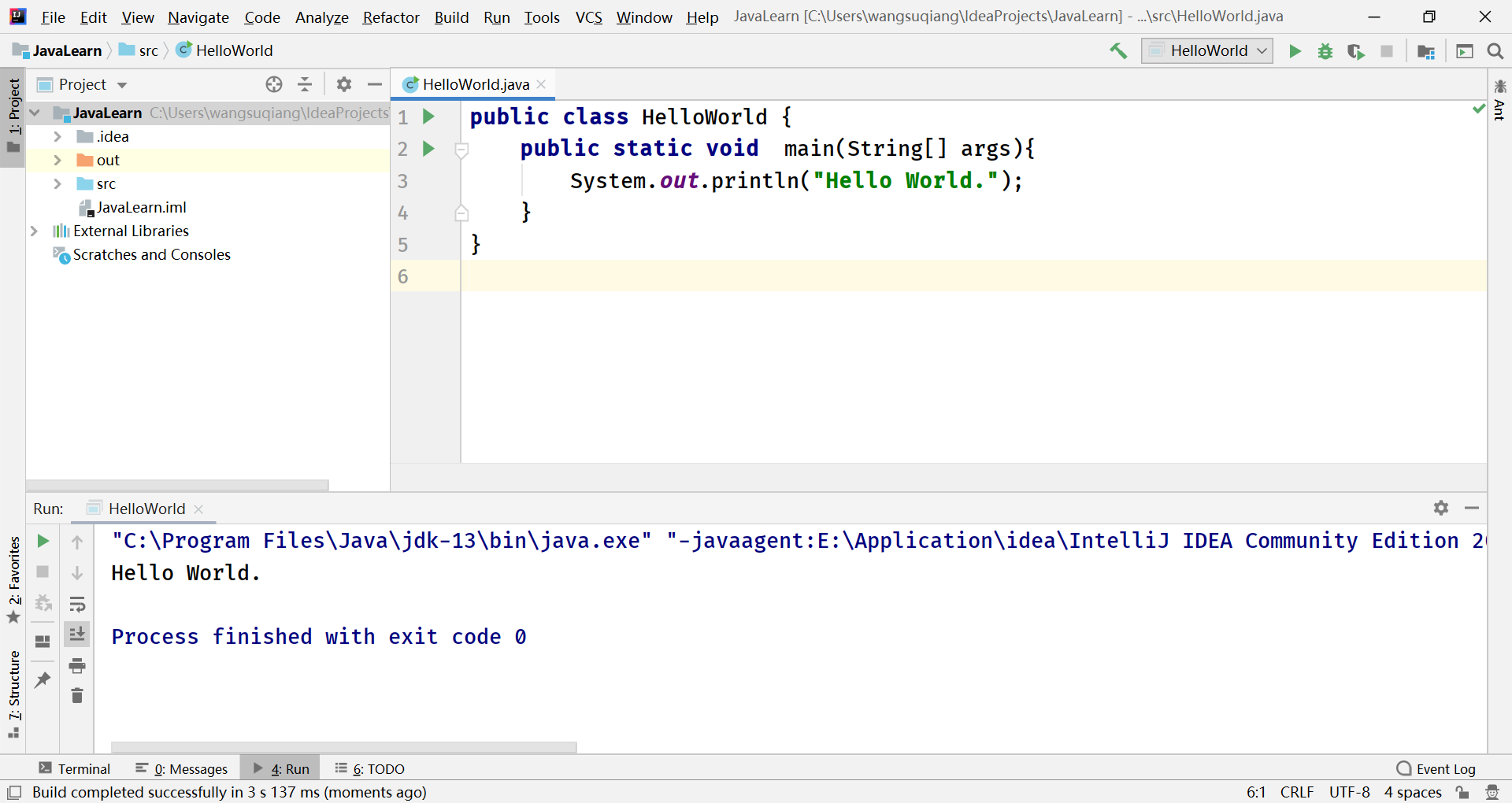 如果上述代码每月语法错误时,同级目录下会生成HelloWorld.class文件