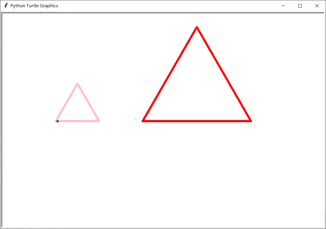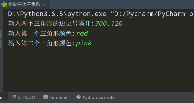定义一个函数,参数为三角形的边长和颜色,并调用该函数绘制两个边长颜色不同的等边三角形