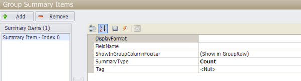 1、添加分组项,Run Designer--Group Summary Items--Add,设置计算添加SummaryType:Count总计
