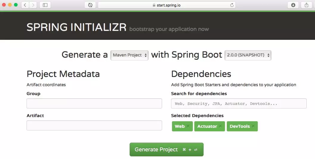Spring Initiatlizr 让创建 Spring Boot 项目变的很容易,但是,你也可以通过设置一个 maven 项目并添加正确的依赖项来开始一个项目。