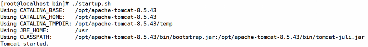 去到解压以后的目录 /bin下面,使用./startup.sh命令启动tomcat看到如下信息证明启动成功: