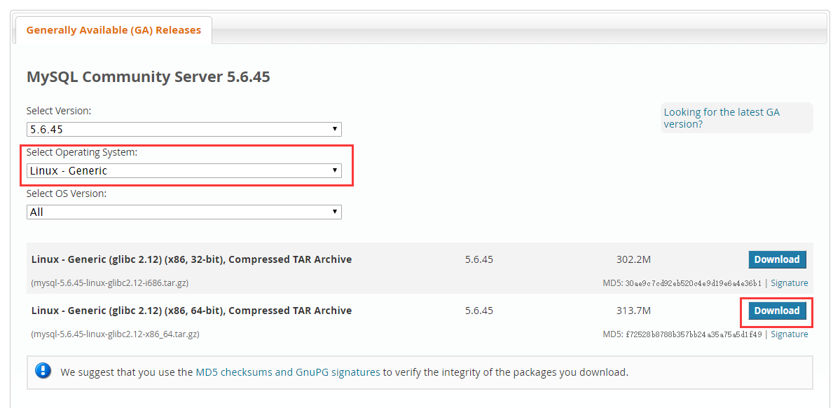 或者直接用以下链接下载: https://cdn.mysql.com//Downloads/MySQL-5.6/mysql-5.6.45-linux-glibc2.12-x86_64.tar.gz