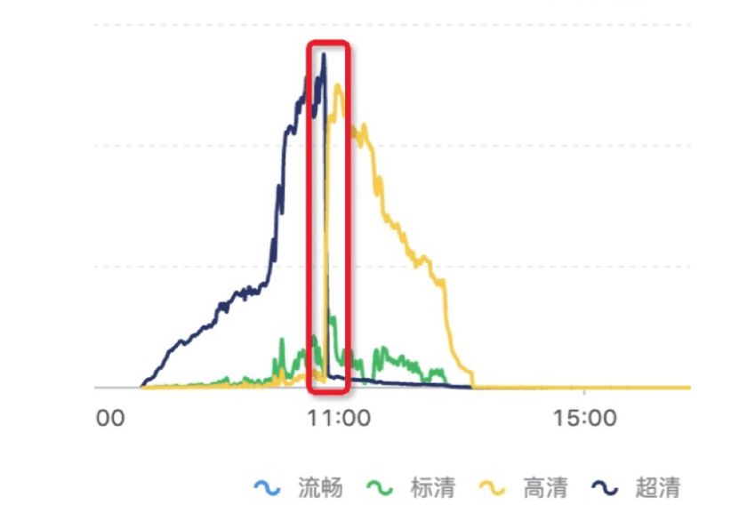 以上是2019双11猫晚当天某个阶段开始带宽比较紧张的情况下,对一批符合流量调整条件的用户进行的实时清晰度干预,基本上是1分钟左右,蓝色线瞬间掉下来,黄色线瞬间就上去,非常快速地完成了一次流量的调配。同时通过对HLS协议的扩展,可以在端侧支持两个GROUP下的主备流的自适应切换,来支持故障容灾等场景的稳定性要求。
