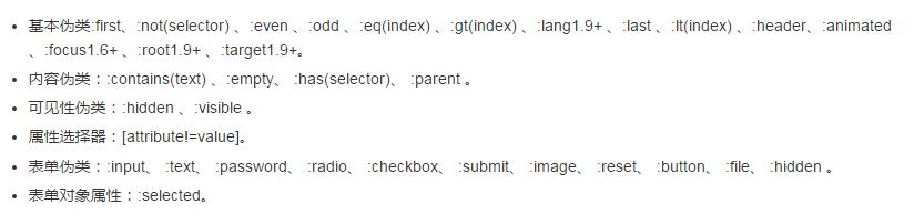 Zepto仅支持简单的选择器,对于jQuery中提供的高级选择器很多都不支持:
