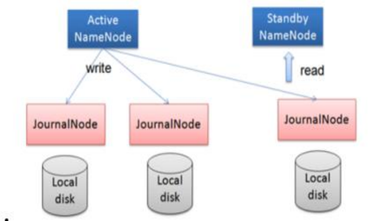 任何修改操作在 Active NN 上执行时,JournalNode 进程同时也会记录修改 log到至少半数以上的 JN 中,这时 Standby NN 监测到 JN 里面的同步 log 发生变化了会读取 JN 里面的修改 log,然后同步到自己的目录镜像树里面,如下图: