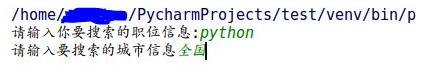 注意一定要把setting中的ITEM_PIPELINES解注释,接下来就是跑起我们的项目,通过input输入想要爬取的职位和城市,