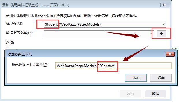添加基架:pages新建文件夹student,然后右键添加razor页面