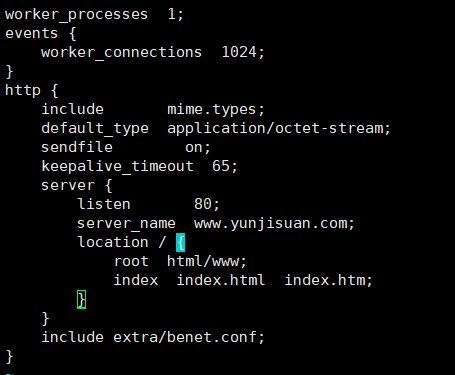 ——打开nginx配置文件:vim /usr/local/nginx/conf/nginx.conf