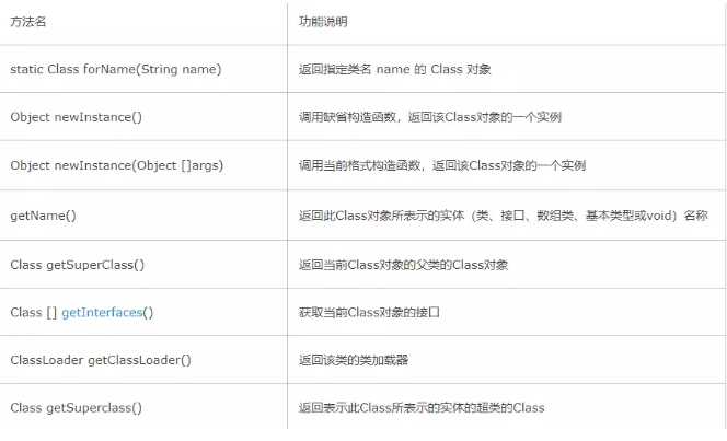 然后新建一个反射类,运用反射方法对上面的类进行访问.包括对私有方法的访问,对私有属性的访问等。其中常用的一些方法以及解释: